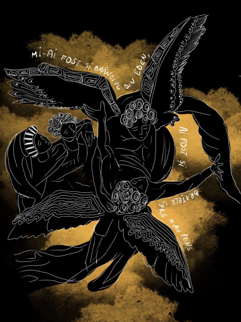 De colajele care îi definesc acum stilul s-a apucat cu două luni înainte să înceapă pandemia. Însă pasiunea pentru artă trăiește în ea de mică. „Din partea bunicii, mai toți au fost artiști, scriitori, fel și fel. Mă rezum doar la bunicii mei, că ei m-au crescut, de aici îmi știu originile. De mică desenam cu mamaie, tataie nu prea desena. Eram foarte pasionată.”